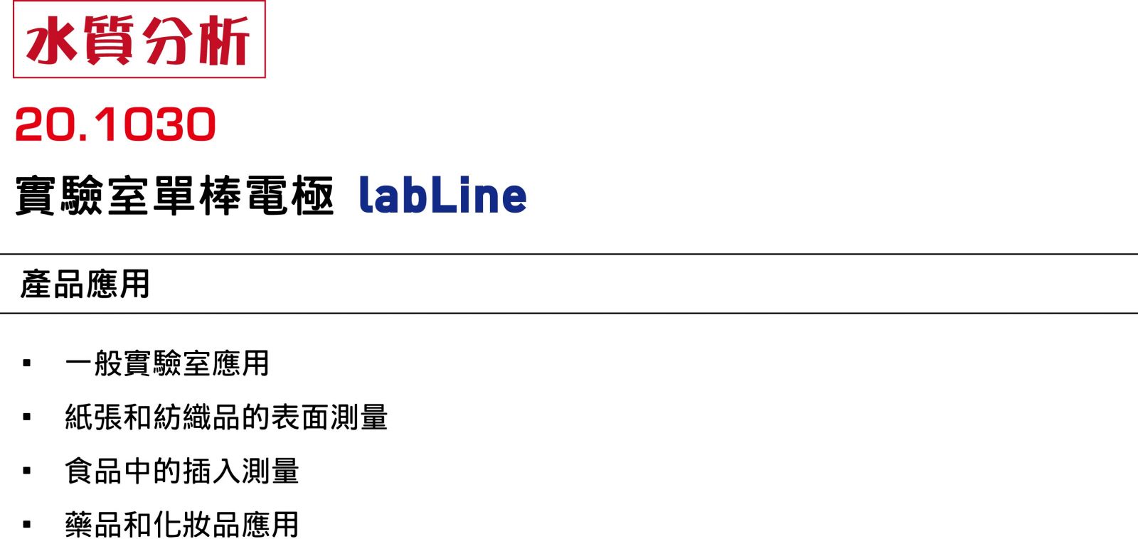 20.1030 - 實驗室單棒電極 labLine 型號:20.1030 • 用於實驗室的高品質電極 • 特殊的刺入式、微型及平魔片產品 • 玻璃電導率電極和補償溫度計 • 氨電極 廠牌 分享到: 加入詢價 商品規格 檔案下載 英文型錄 相關產品 20.2943 - 一般水技術用電磁式導電度及溫度電極 ecoLine Ci 20.2942 - 一般工藝工程用電磁式導電度及溫度電極 tecLine Ci-S 20.2930 - 4 極式導電度電極 tecLine CR-4P 20.2925 - 工業型石墨材質導電度電極 tecLine CR-GT 20.2924 - 雙電極導電度電極 tecLine CR 20.2923 - 導電雙電極導電度電極 ecoLine CR-PVC 20.2922 - 導電度測棒 20.2670 - 光學濁度測棒